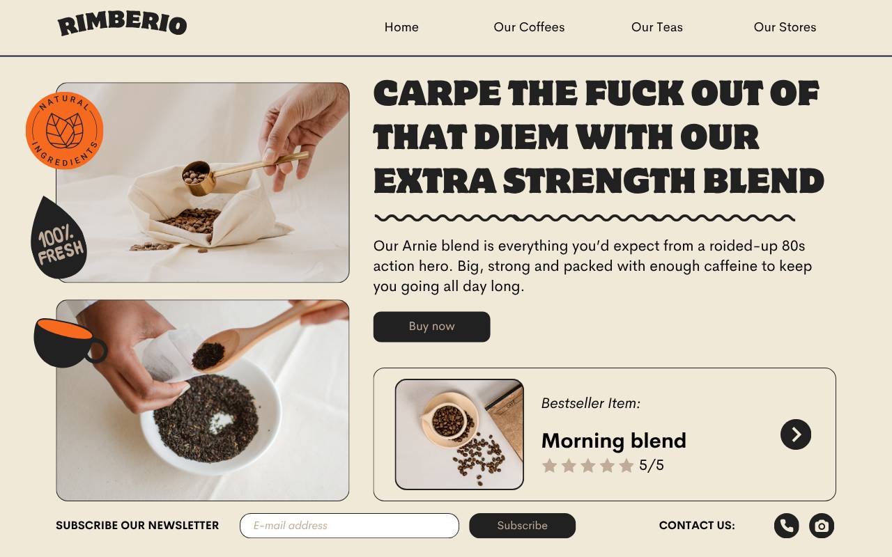 But Option 1 feels more balanced, right? Sure, it's not going to be right for every brand. But for a bold, in-your-face coffee brand it works. That's because the swearword is there for impact, not to be the main attraction.