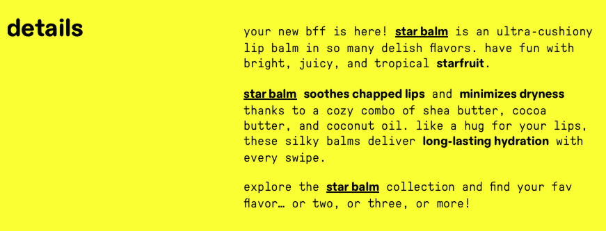Immediately, it's lost that Starface-y Gen Z vibe. The chattiness and laid back tone are almost completely gone because none of it was really coming from the copy itself, but from the way it was presented and formatted.