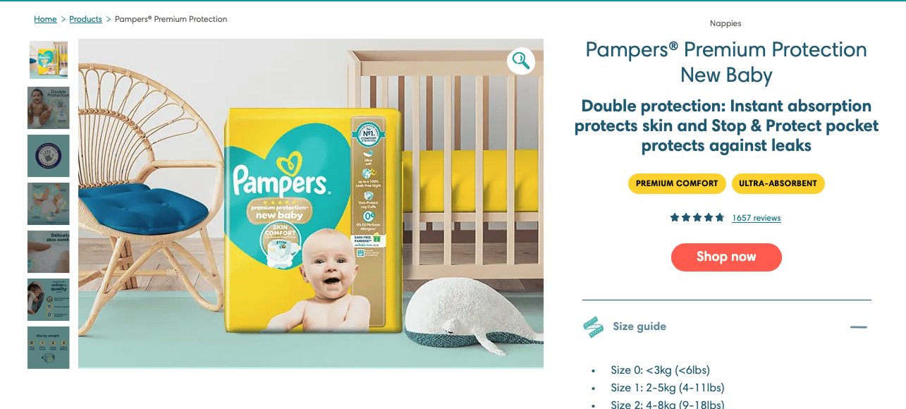 It sounds premium. βPerfect nightsβ reads calm, competent and elegant. βPoonamiβ doesn't. And while both are valid messaging strategies (Pampers Poonami ads performed really well), only one pairs naturally with B-Corp badges, awards and higher price points. All of Peachies' copy builds that sense of quality and premiumness through the things it chooses to say (and not say). And that sense of quality helps customers justify the purchase.